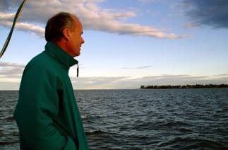 Below: Grant looking for a good spot to anchor off Scarborough. Photo by Bernd & Shirley. |