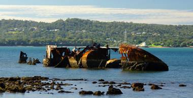 Below: wreck of the Platypus, Peel Island. |