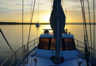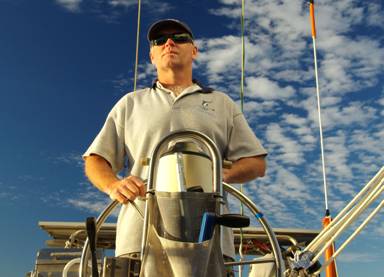 There was no question that the highlight of the cruise for Bernd was helming Masala, as we couldn’t get him off it for the whole eight days. No more so than on the 37 mile sail from Canaipa to Scarborough, where we romped along at 6 to 7 knots with every stitch flying – twin headsails on our cutter rig (genoa and staysail) and the mainsail. |