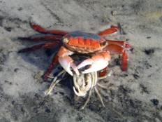 Above left: Spanner Crab eating a Soldier Crab. |