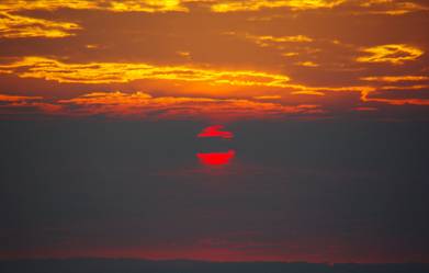 Right: dust and heavy smoke create an other-worldly sunrise, seen from Moon Point, Fraser Island |