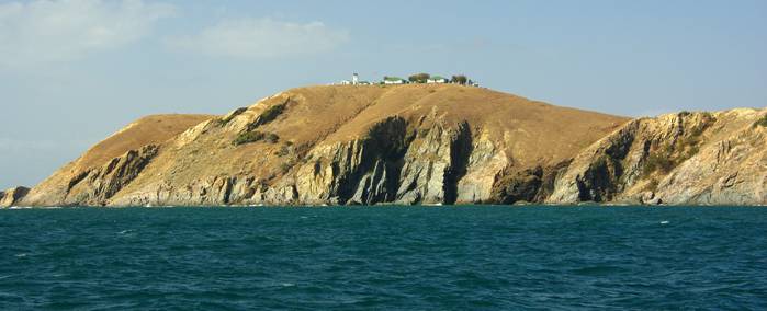 Above: Cape Capricorn and its lighthouse buildings, seen from the sea. Named after the Tropic of Capricorn, which passes almost right through it. |
