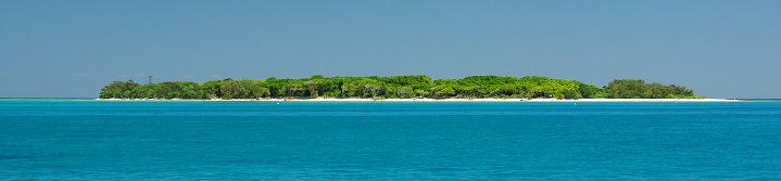 With a sigh of relief we picked our way through the coral bommies and anchored in 8 metres of clear blue water over pure white sand. A half mile away, the tiny 0.15 square kilometre island with its covering of rich green Pisonia forest, floated in calm, translucent water, fringed by a dazzling coral sand beach. |