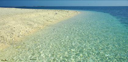 Top & Left: Lady Musgrave floats in a blue lagoon. The island is fringed by coral sands |