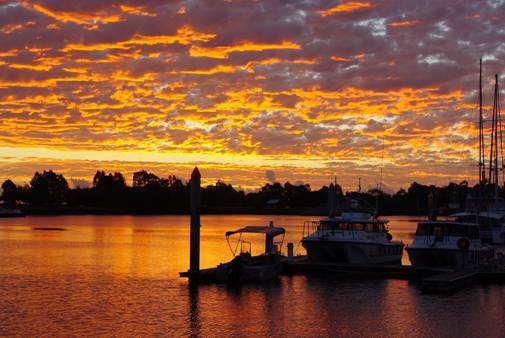 Above: sunrise over Gladstone Marina on the morning of departure |