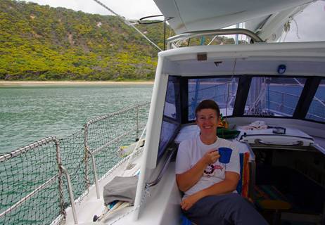 Left: Leanne enjoying relief from the bugs at Pearl Bay |