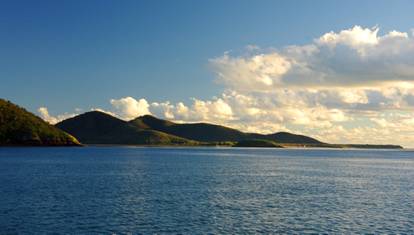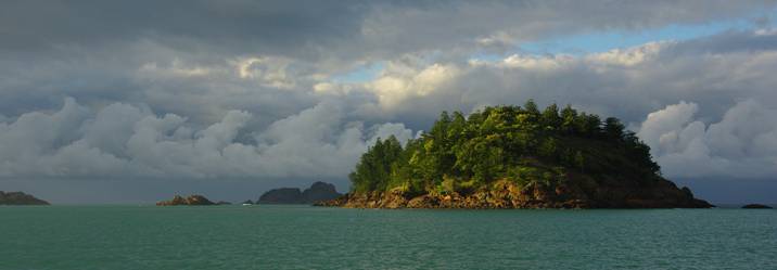 Pearl Bay is one of the prettiest anchorages on the coast—lovely beaches on one side and the scattered Hervey Islands on the other make it a very intimate and inviting setting. The rugged mountains to the west are often silhouetted against magnificent sunsets. And no bugs!! |