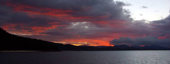 Island Head Creek is rimmed to the west by high mountains. The wildlife is prolific, the fish too. Last night we heard a sizzling sound around the boat. We went outside and shone the torch onto the water. It erupted. Thousands of Garfish burst from the surface, frightened by the light. Everywhere we shone the torch the surface of the sea boiled and long thin slivers of silver launched themselves into the air, arcing down or tail walking tens of metres at a time. Spectacular! |