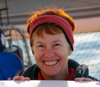 Left: 2009—on a good hair day, sailing on Moreton Bay Below: 2011—11 June at Pearl Bay, a very bad hair day, the photo that prompted this article |