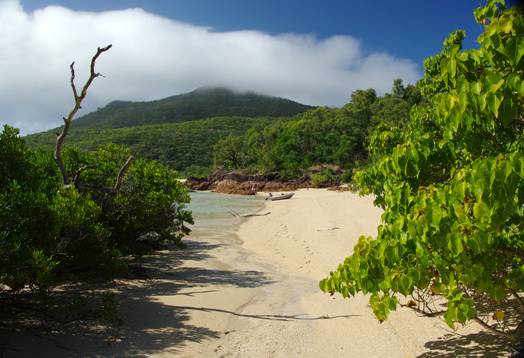 Left: one of the peaks of Shaw Island making its own weather in the howling south-easterly winds. Seen from the beach at Burning Point. |