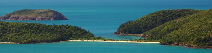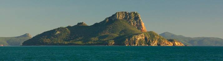 Above: the dramatic profile of Pentecost Island, lit by early morning light, dominates the eastern approach to Lindeman Island. |
