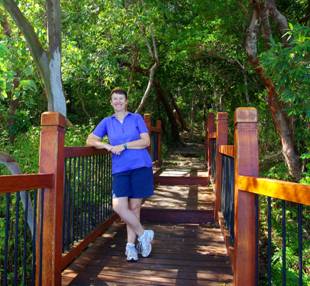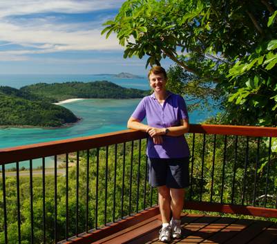 Above and Right: wonky eye still giving me grief, but you can’t wipe the smile off my face. Why? Well, just look at that view!! (Brampton Island). |