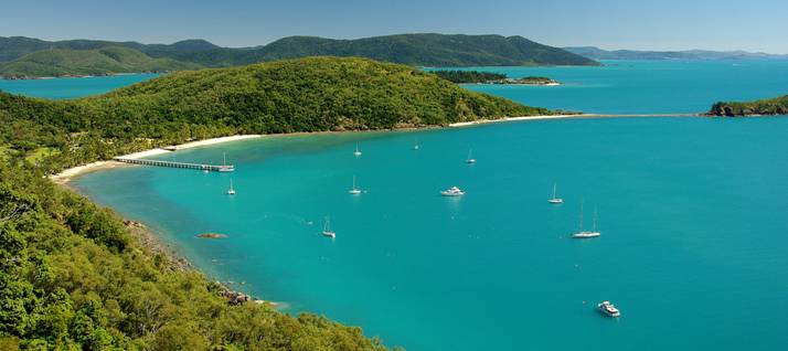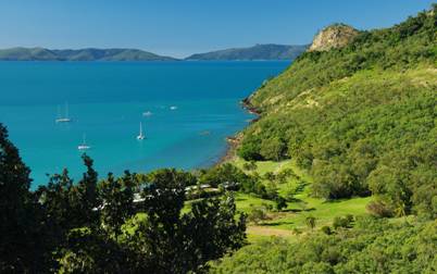 Above: Bauer Bay, South Molle Island, from 154m Spion Kop. The resort on Daydream Island can be seen in the background |