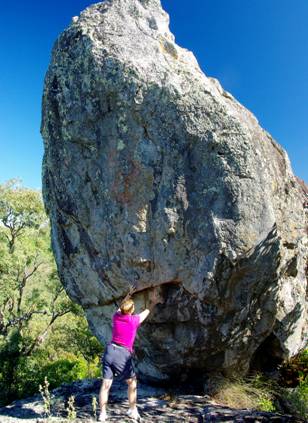 Top left: Balancing Rock from below Top right: giving Balancing Rock a helping hand Left: Bauer Bay and Spion Kop from the granite summit above Balancing Rock |