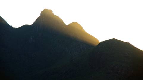 Then there is the morning. There is nothing between this stunning mountain range and the rising sun. Before the sun appears the mountains begin to glow purple. As its rim bursts from the sea, so the colours burst from the mountains. As the sun rises higher, so the hue changes from purple, to rich orange, yellow and finally the green-brown of the forests intermingled with exposed granite. |