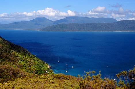 Right: the anchorage and the mainland from the 268m summit of Fitzroy Island |