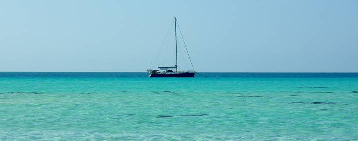 28 – 29 AUGUST. It was a relief to escape from the fishing fleet and sail in light winds for Upolu Cay, a little patch of sand in a vast area of coral reef about 17 miles north of Cairns. Once the day trippers left, we had the entire place to ourselves. Staying out at the reef overnight is an experience hard to beat. |