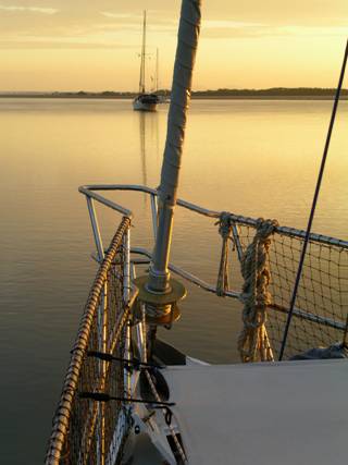 Making the decision to stay put at Garry’s Anchorage in the Great Sandy Straits, while other boats left and crossed the Wide Bay Bar on the way south to Mooloolaba. Shortly afterwards the Bureau of Meteorology issued a storm warning over the radio. A massive inland thunderstorm cell stretching from Brisbane to Rockhampton was bearing down on the coast.