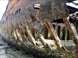 We left Garry’s and caught the high tide over the shallows to South White Cliffs, Sheridan Flats actually, where we stayed another four days. This is a gorgeous spot, also on Fraser Island. Nearby is the wreck of an old iron ship, the Ceratodus”. |