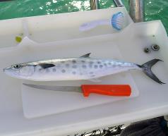 Grant got excited and decided to join in. I wanted 6 fish to make a really nice lunch as we hadn’t had fresh food for quite a number of days. Grant thought that I was a bit cocky and had no chance of succeeding. So while I cast and caught fish Grant cast and caught nothing. Eventually he got tired of trying and thought he’ll get in the dingy and troll for flatties, again he was unsuccessful. In the meanwhile I caught my 6 fish and Grant just shook his head in total amazement. He happily cleaned all the fish and what a lovely lunch it all made. |