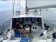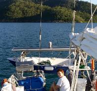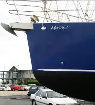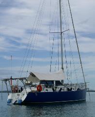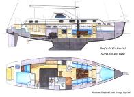 Masala’s Additional Design Features Masala has been carefully constructed to the Radford 415 design specifications. However, in certain non-critical areas, Craig and Lisa made some wonderful improvements. Dodger The Radford hard dodger is too small to provide the cockpit with adequate shelter from bad weather and the sun. Masala’s hard dodger is longer and higher, but still works in beautifully with the boat’s lines. There is room for two to sit under it on each side. Another improvement to the dodger design is to eliminate the ingress of water and dirt under the dodger through the holes where the halyards from the mast enter, by routing them around the outside of the dodger. The two winches that would normally be located on the cabin top have been moved to the cockpit coaming to suit, where they are easier to use. The result is a large, dry area under the dodger and forward of the companionway, completely free of rope clutter, which is ideal for keeping safety gear, clothing, binoculars, and an assortment of small items like sunglasses, hats, sea-sickness pills, etc. handy when sailing. In harbour or at anchor it is an ideal place to store the cockpit seat cushions when not in use. The hard dodger regularly draws favourable comment from admirers of the boat, and envious comments from those sailors whose yachts only have small and/or soft dodgers. Bowsprit The bowsprit has been extended to reduce the risk of damaging the hull when raising and lowering the anchor. Lifelines The standard wire lifelines have been replaced with solid stainless steel rails. Netting is available to enclose the entire deck, if desired (essential if you have children or pets). Gunwales The gunwales have been raised towards the bow end of the yacht, ensuring a drier deck, more secure footing, and less likelihood of items going overboard. External Lockers and Lazarette The standard lazarette has been deleted to allow for a larger aft cabin with more internal cupboard space. To partially compensate, two storage lockers have been built into the steps of the sugar scoop. The sugar scoop also houses two 9kg gas bottles, located in lockers on each side. Targa Bar A very strong targa bar with removable davits has been welded over the sugar scoop. It carries the dinghy, solar panels, GPS antenna and stern light. Wear Points High wear areas where paint is likely to be chipped have been capped with stainless steel before painting. Examples are the gunwale tops, fairlead edges, sugar scoop step edges, and cockpit edges adjacent to sheet winches. Insulation The hull is insulated to below the waterline with blown foam, a critical design feature in a steel boat—it keeps the vessel warm in winter, cool in summer, and prevents internal condensation. Floorplan The interior floorplan is a mirror image of the standard design to allow easy access to critical engine parts such as the oil filter, fuel injection system, and salt water cooling pump. |