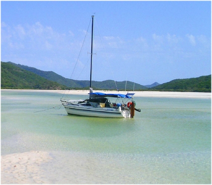 ABOVE: In full cruising rig, minus pop-top covers and boom tent (Breakfast Bay, Gloucester Island, north of the Whitsundays).