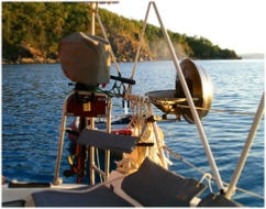 RIGHT: Barbeque; cockpit cushions; backrests (Whitsundays).